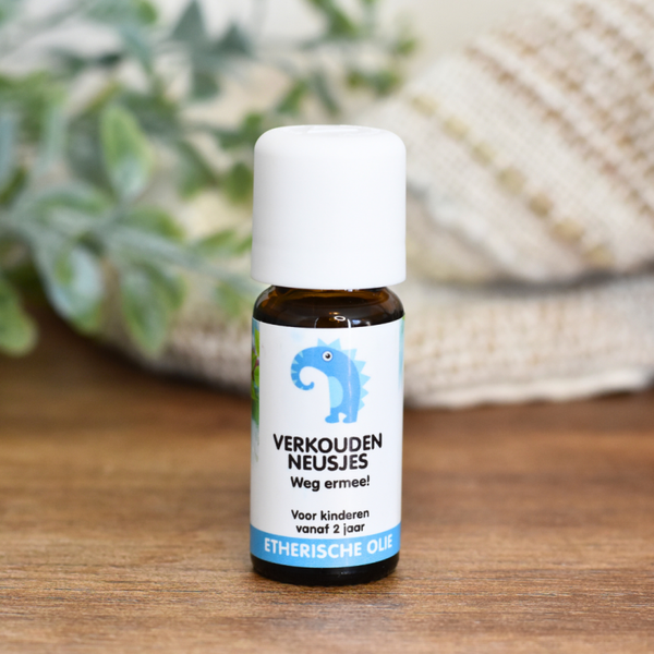 De Verkouden Neusjes Etherische Olie is een zachte, kindvriendelijke blend die helpt bij een verstopte neus en een verkoudheidsklachten.